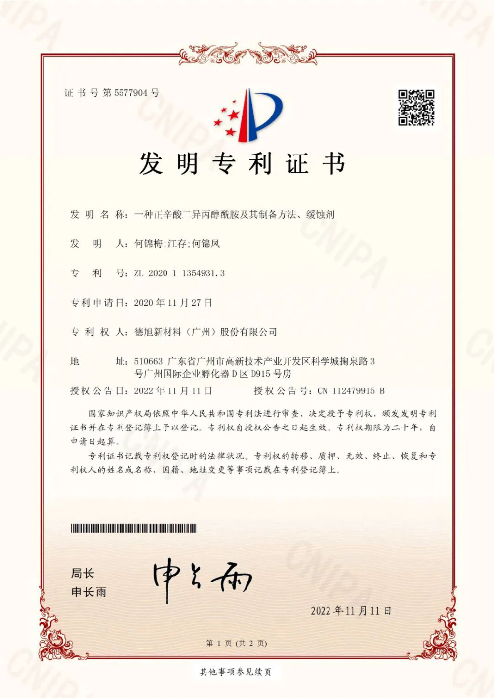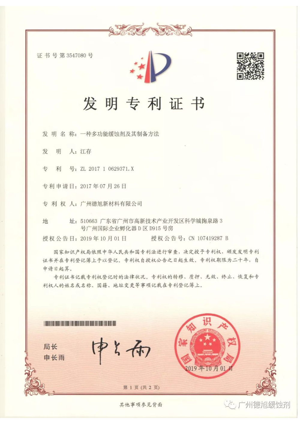 德旭新材料(广州)股份有限公司成立于2012年,坐落于国内新材料领域创新集聚区的广州高新技术产业开发区核心位置——广州科学城,是一家集研发、生产、销售于一体且拥有自主知识产权的专精特新企业。长期专注于金属材料的防腐蚀研究与创新,为汽车与船舶、航空航天、半导体及3C电子、新能源、水性防腐涂料等领域的金属防腐蚀提供产品和解决方案。同时也服务于工业润滑、金属表面处理、工业、商用和民用重油污清洗和益智玩具等行业。公司产品获得BASF(巴斯夫)、HP(惠普)、汉高、美泰、MOOSE、中国船舶、中国机械总院、安集、汇川、三环、晨光等国内外知名企业的青睐。